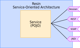 The Resin remoting is an infrastructure that allows a service to be exposed via many different service protocols. For example in this tutorial, there is a plain-old Java object (POJO) that implements a service and this service is made available using REST, SOAP, Hessian, and WebBeans. The service is implemented once and these protocols are activated with a few simple changes to the configuration file.